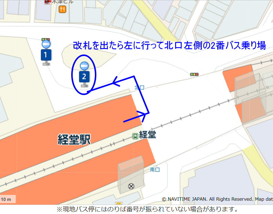2番バス乗り場「経01千歳船橋駅行」か「経02 八幡山駅行」に乗ってください、始発です。