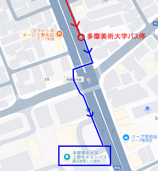 11番目の停車駅「多摩美術大学」バス停下車(乗車時間約20分)