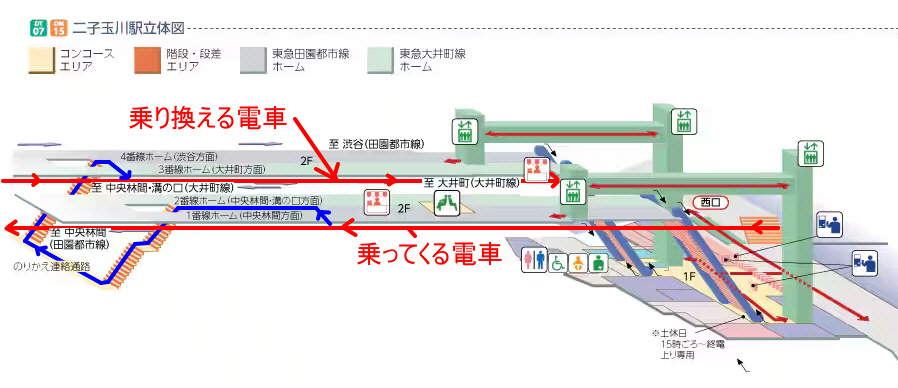 「二子玉川」駅で下車し乗換えます。