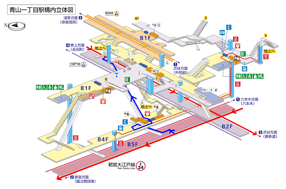 青山一丁目駅で「大江戸線」から「半蔵門線」に乗り換えます。