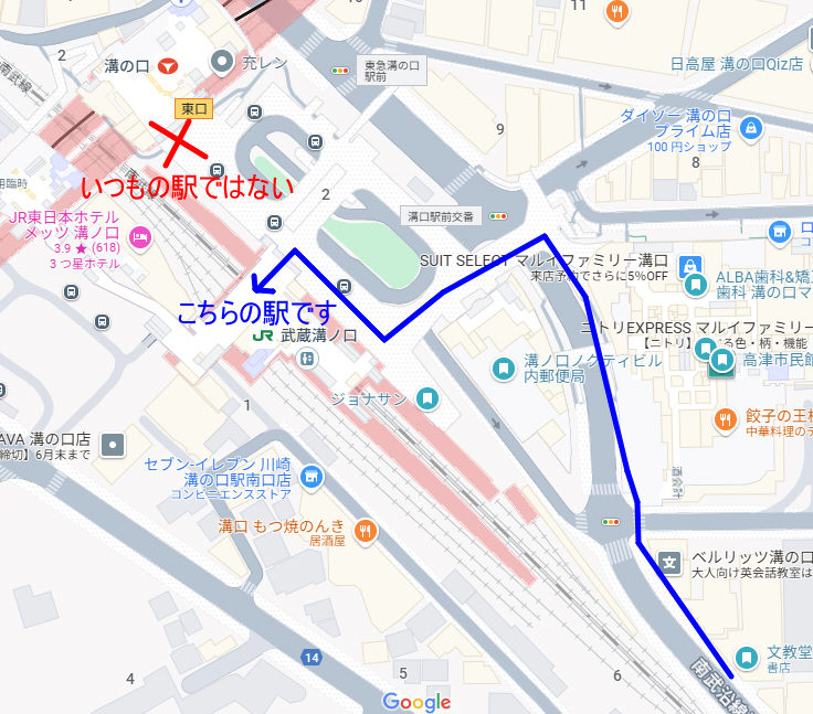 駅のかいだんを降りたら左方向に進んでいきます。