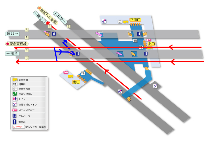 3番線か4番線に到着しますので1番線の東急大井町線の「溝の口」方面行のホームへ移動します。