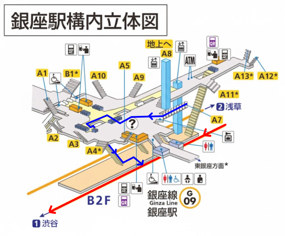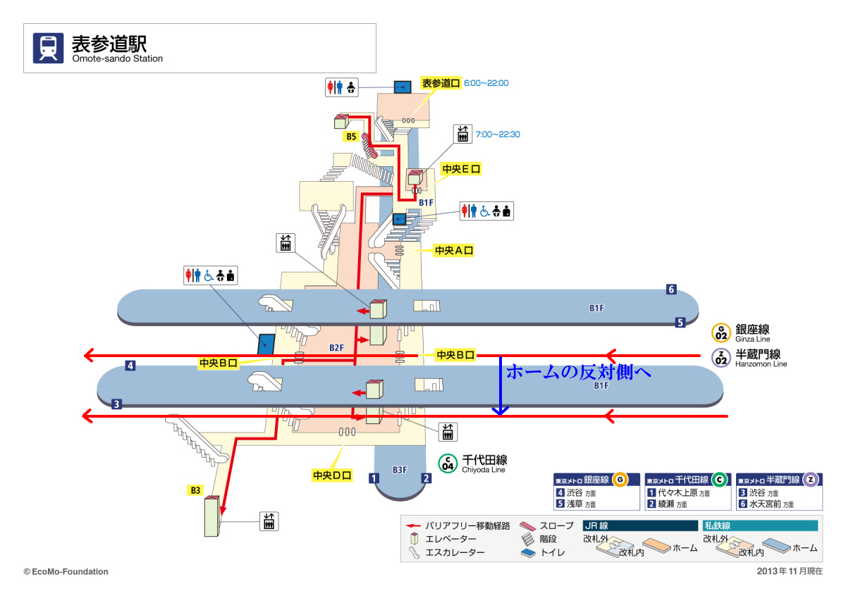 表参道駅で地下鉄「半蔵門線」(渋谷方面)行きに乗り換えます。