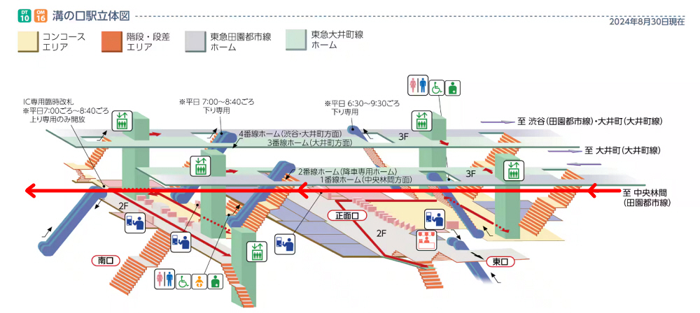 いつもは3番線の「大井町線」に乗っていると思いますが隣の1番線「田園都市線」の「中央林間行き」電車に乗車してください。