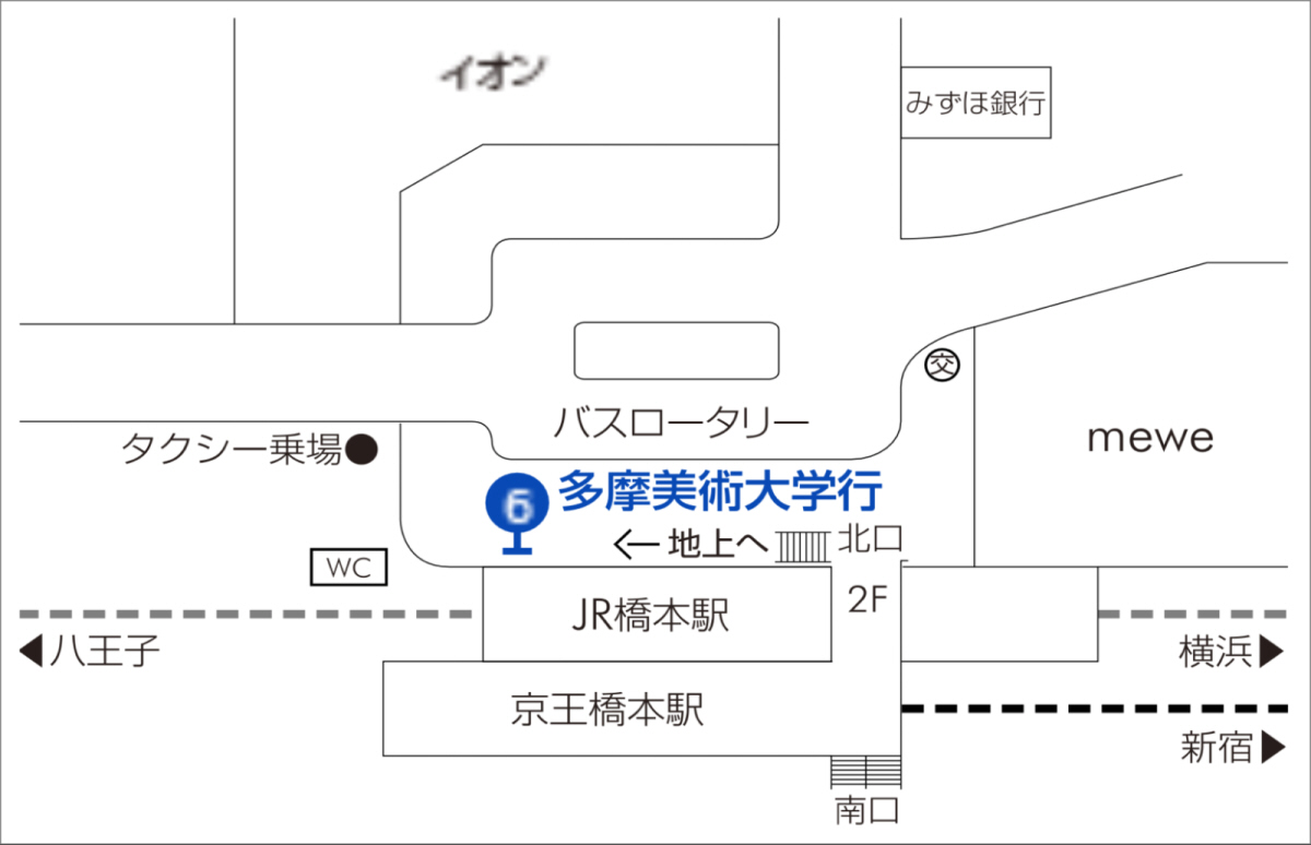 一番先の6番乗車口が「多摩美術大学行」のバス停になります。