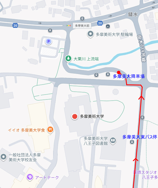 行く場所によっては「多摩美大東」バス停の方が近い場合があります。